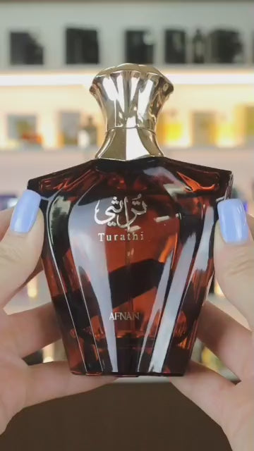 Turathi Brown de Afnan es una fragancia de la familia olfativa Amaderada Especiada para Hombres. Esta fragrancia es nueva. Turathi Brown se lanzó en 2023. Las Notas de Salida son ámbar, pachulí, notas amaderadas y notas ozónicas; las Notas de Corazón son notas especiadas, especias aromáticas y vainilla; las Notas de Fondo son Notas balsámicas, rosa y Notas acuáticas.