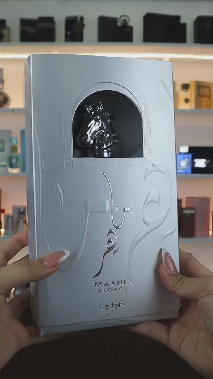 Maahir Legacy by Lattafa Perfumes is a fragrance for men. Top notes are Lime, Mint, Grapefruit, Lavender and Pineapple; middle notes are Black Pepper, juniper berry, Rosemary, Geranium and Frankincense; base notes are Ambroxan, Oakmoss, Vetiver, Tonka Bean and Cashmeran.
