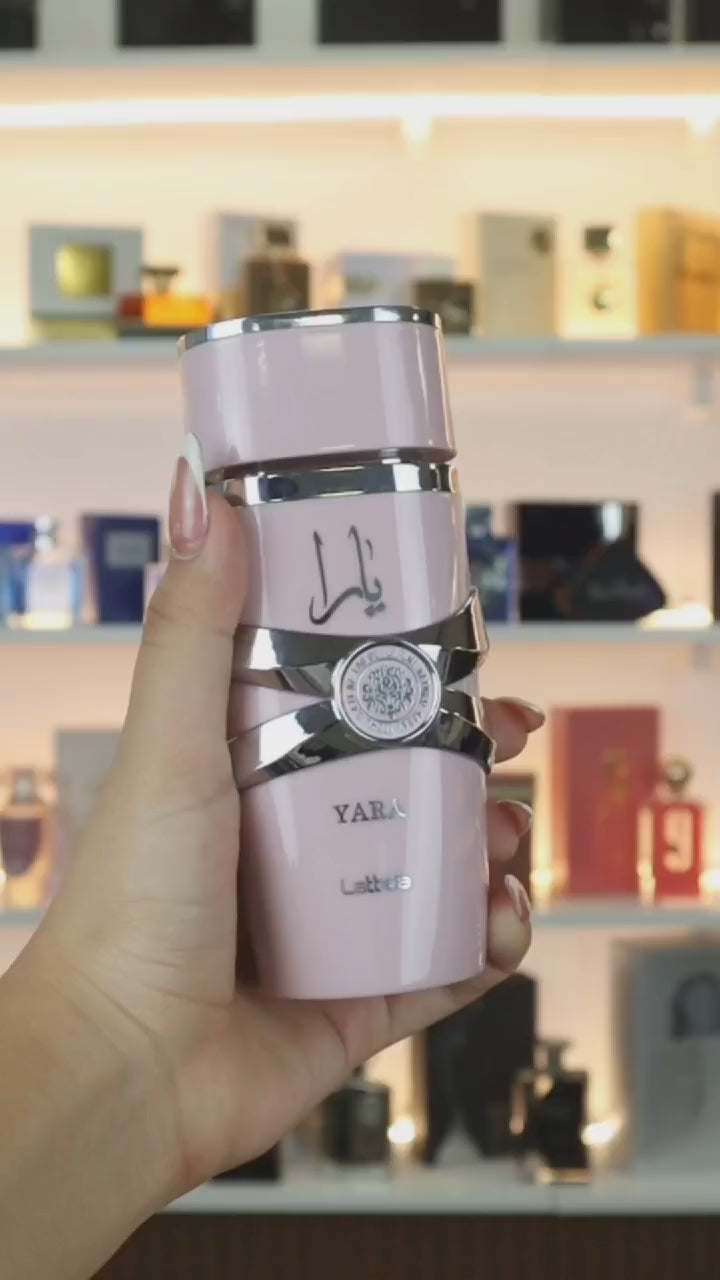 Yara de Lattafa Perfumes es una fragancia de la familia olfativa Oriental Vainilla para Mujeres. Yara se lanzó en 2020. Las Notas de Salida son orquídea, heliotropo y naranja tangerina; las Notas de Corazón son Acuerdo goloso y frutas tropicales; las Notas de Fondo son vainilla, almizcle y sándalo.